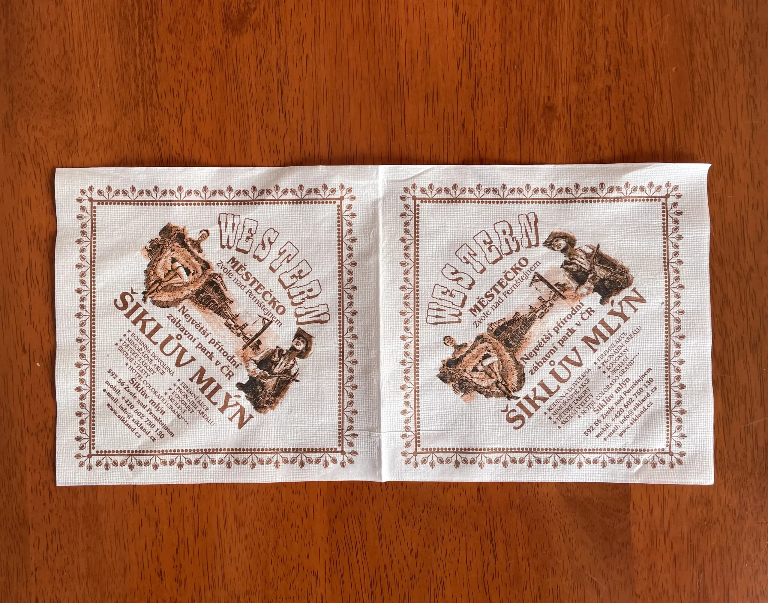 Ubrousek s potiskem 1-vrstvý, 33×32 cm, skládaný 1/4